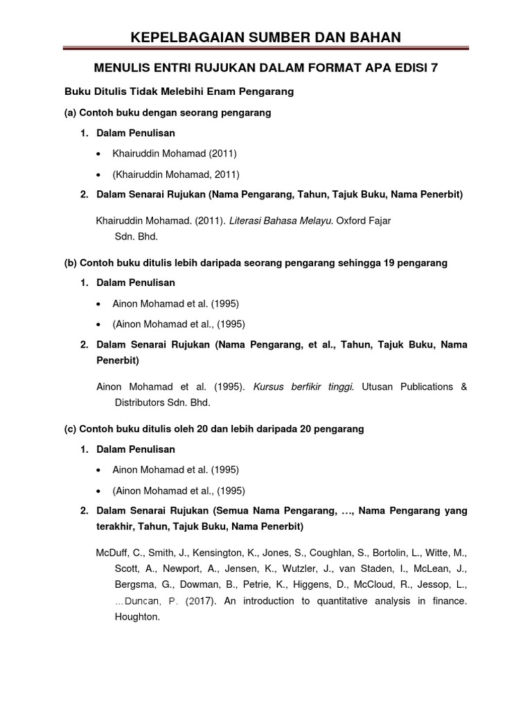 Penulisan Rujukan Mengikut Format Apa Contoh 1